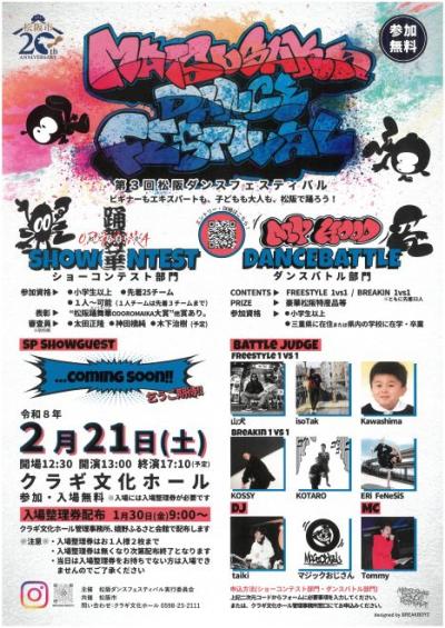 チラシコーナー公開日:2025年12月29日第3回松阪ダンスフェスティバル/松阪ダンスフェスティバル実行委員会松阪市市民活動センター -