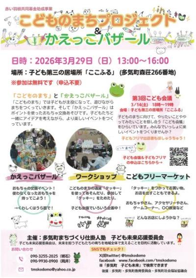 チラシコーナー公開日:2026年02月24日こどものまちプロジェクト&かえっこバザール/多気町まちづくり仕掛人塾 子ども未来応援委員会松阪市市民活動センター -