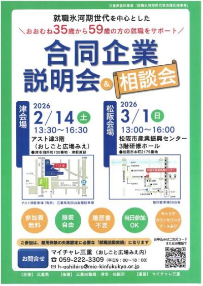 チラシコーナー公開日:2026年02月24日合同企業説明会&相談会/三重県松阪市市民活動センター -