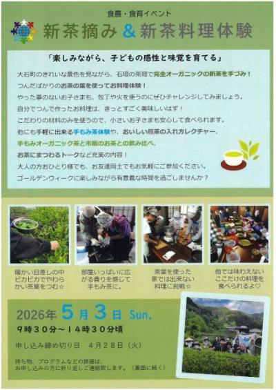 チラシコーナー公開日:2026年03月14日食農・食育イベント 新茶摘み&新茶料理体験/NPO法人 Earth as Mother 三重松阪市市民活動センター -