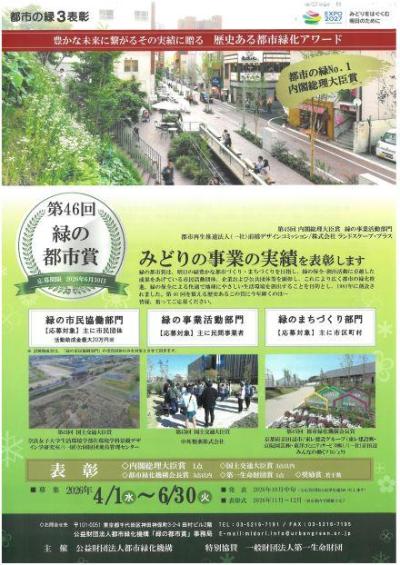チラシコーナー公開日:2026年04月08日第46回緑の都市賞/公益財団法人都市緑化機構松阪市市民活動センター -