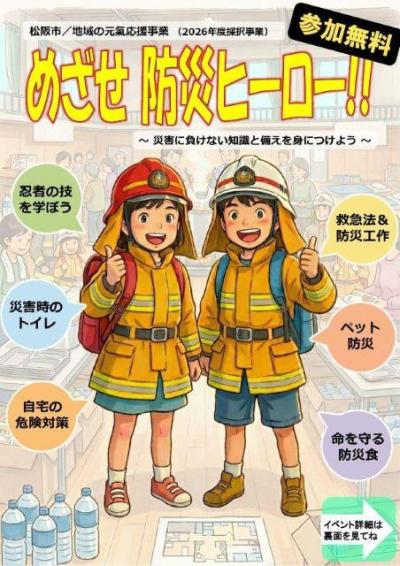チラシコーナー公開日:2026年04月24日めざせ防災ヒーロー / スーリア松阪市市民活動センター -