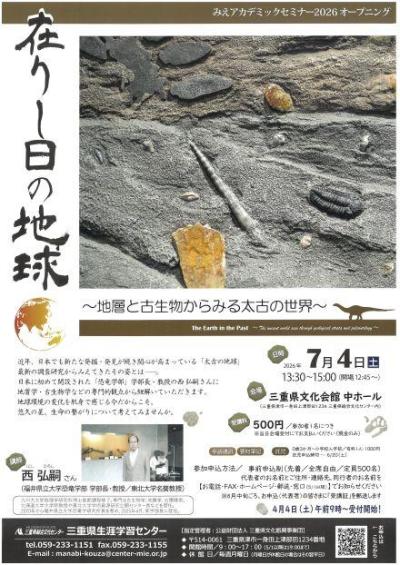 チラシコーナー公開日:2026年04月24日みえアカデミックセミナー2026オープニング 在りし日の地球/三重県生涯学習センター松阪市市民活動センター -