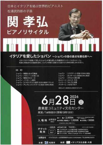 公開日:2026年03月30日関 孝弘 ピアノリサイタル/松阪市松阪市市民活動センター -