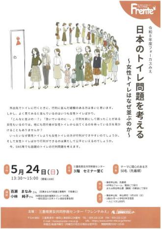 公開日:2026年03月31日令和8年度フォーカスみえ 日本のトイレ問題を考える/三重県男女共同参画センター「フレンテみえ」松阪市市民活動センター -