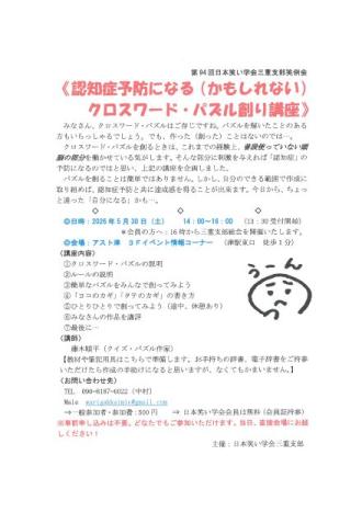 公開日:2026年04月02日《認知症予防になる(かもしれない)クロスワード・パズル創り講座》/日本笑い学会三重支部松阪市市民活動センター -